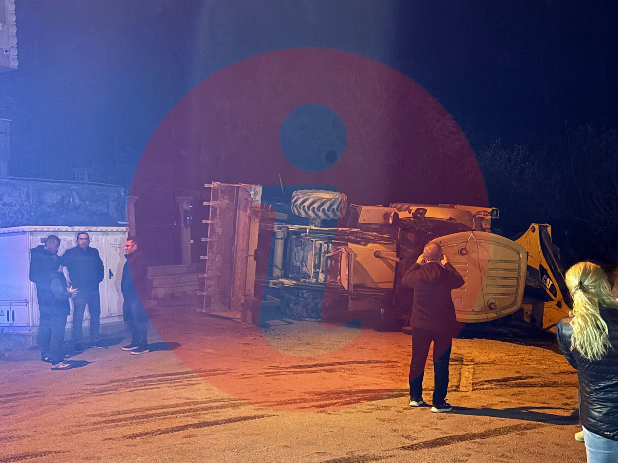 Akşam saatlerine doğru, İSU’ya ait olduğu ifade edilen park halindeki iş makinası henüz bilinmeyen bir nedenle devrildi.