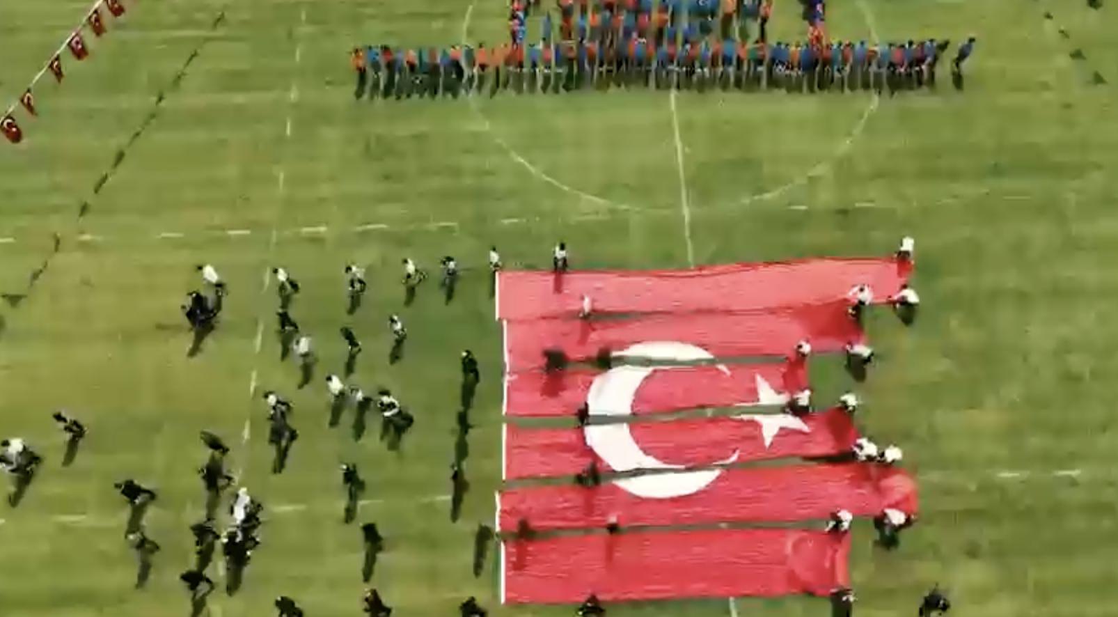 DMM tarafından yapılan açıklamada, kutlama programı kapsamında dev bir bayrak koreografisi gerçekleştirildiği, gösterinin tamamlanmasının ardından şeritler halindeki uzun parçaların usulüne uygun ve düzenli bir şekilde muhafaza edilmek amacıyla rulo yapılmak üzere zemine serildiği ifade edildi.
