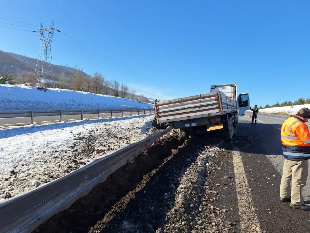 Kaza, TEM Otoyolu’nun Bolu geçişinde meydana geldi. Edinilen bilgiye göre, Hatay’dan Kocaeli’ne demir malzeme götüren 31 PAF 33 plakalı tır, Yeniçağa ilçesi mevkiinde kontrolden çıktı. İstanbul istikametinde seyreden tır, sol şeritte bulunan bariyerlere çarptı. Otoyolun sol şeridinde orta refüje demir malzemeler saçıldı. Durum 112 Acil Çağrı Merkezi’ne bildirildi. Olay yerine kısa süre içerisinde Karayolları Bölge Müdürlüğü ekipleri sevk edildi. Karayolları ekipleri tarafından yolda güvenlik önlemleri alındı. Tır sürücüsünün uyuduğu iddia edilen kazada sol şerit trafiğe kısa süreli kapalı kaldı. Olay yerine sevk edilen otoyol jandarma ekipleri tarafından kazayla ilgili tutanak tutuldu.