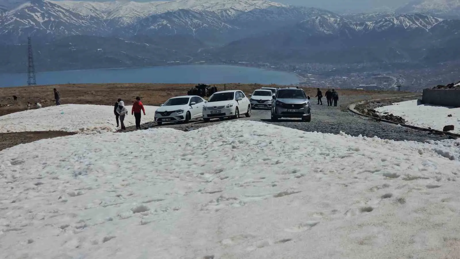 Bitlis’in Tatvan ilçesindeki Nemrut Kalderası, doğaseverlerin ilgisini çekmeye devam ediyor. Bitlis Valiliği, Tatvan ilçesindeki Nemrut Kalderası’nda meydana gelen ayı saldırıları ve ayıların beslenme alışkanlıklarının bozulması nedeniyle 31 Ekim 2024 tarihinden itibaren kış sezonu boyunca kalderanın iç kısmına inişi yasaklamıştı. Yasağa rağmen, doğaseverler ve fotoğraf tutkunları Nemrut Kalderası’na olan ilgilerini sürdürüyor. Bölgenin doğal güzelliklerine hayran kalan doğaseverler, zirveye çıkarak kalderanın muhteşem manzarasını seyretmenin keyfini yaşıyor. Tatvan ilçesi ile Van Gölü’nün panoramik görüntüsünü de aynı noktadan görebilen ziyaretçiler, doğanın sunduğu bu görsel şöleni fotoğraflamayı da ihmal etmiyor.