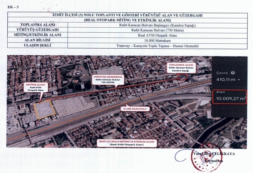 Üçüncü alan olarak Real Otopark Miting ve Etkinlik Alanı belirlendi. Toplanma noktası Rafet Karacan Bulvarı başlangıcı (Kandıra Sapağı) olurken, yürüyüş güzergahı 750 metrelik Rafet Karacan Bulvarı olarak açıklandı. Miting alanının Real AVM otoparkı olduğu ve 10 bin metrekare büyüklüğe sahip bulunduğu belirtildi.