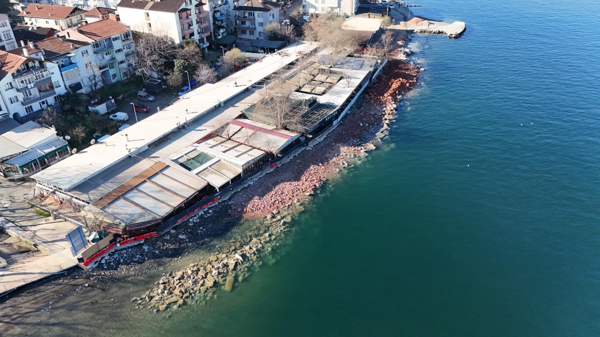 Çalışmalar kapsamında 200 metrelik sahil şeridine 316 adet fore kazık çakılacak. Eski beton kalıntılarının temizlendiği sahilde yoğun bir çalışma yürüten Büyükşehir ekipleri, fore kazık makinesinin çalışabilmesi için platform zemin oluşturdu. Yapılacak zemin iyileştirme çalışmalarından sonra bölgeye yürüyüş yolu da inşa edilecek. Büyükşehir, Değirmendere sahiline inşa edeceği dalga kırıcı set ile hem sahil güvenliğini artırmayı hem de bölgeye yeni sosyal alanlar kazandırmayı amaçlıyor.