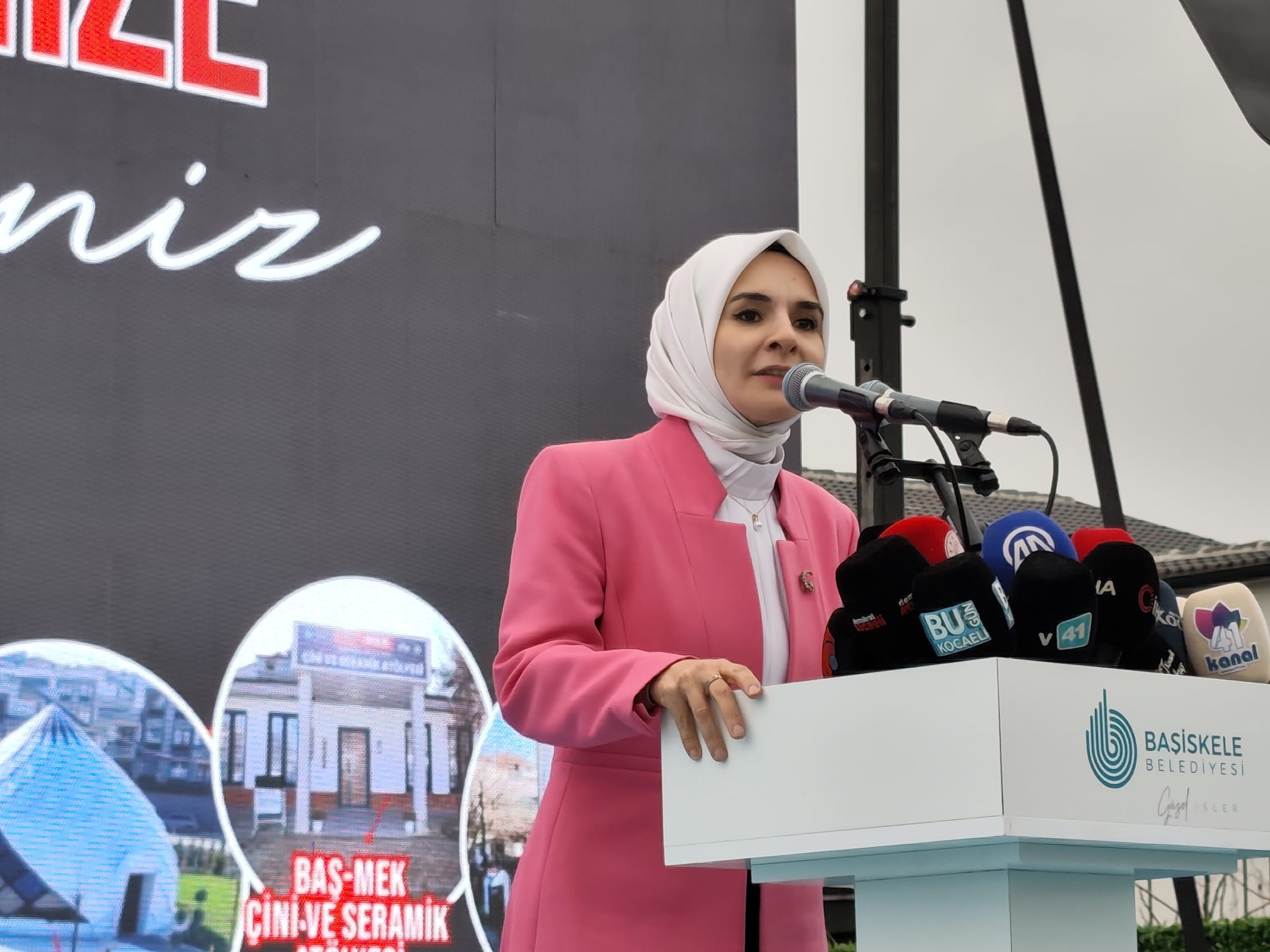 Çini ve seramik atölyesi ise geleneksel sanatlarımızın yaşatılması, yeni kuşaklara aktarılması ve üretimle buluşması bakımından son derece kıymetlidir.Kıymetli misafirler; Anadolu kadını tarih boyunca tarlada, atölyede, okulda, hastanede ve evinde bitmez tükenmez bir emek ortaya koymuş, aile ekonomisinin gizli kahramanı olmuştur. Artık bu emek gizli kalmıyor. Kadınlar böylesi desteklerle üretimin öznesi hâline geliyor, emeklerinin karşılığını alıyor.Türkiye’nin dört bir yanında yerel kalkınmaya katkı sunan kadınlarla gurur duyuyoruz. İyi ki varsınız hanımlar. Her zaman ifade ettiğimiz gibi bir toplum kadınlarıyla güçlüdür. Kadınların desteklenmesi, bir ülkenin geleceğinin desteklenmesi demektir. Bugün Başiskele’de açılışını yaptığımız bu mekânlar da işte bu büyük anlayışın güçlü bir yansımasıdır.Konuşmamı tamamlarken bu güzel girişimde emeği geçen herkesi tekrar kutluyorum. Bu akşam yetimlerle iftarımız var, akabinde de kadınlarla çay içeceğiz. Bütün kadınları bu çaya da davet etmek istiyorum. Sizlerle daha sıcak sohbet etmek üzere hepinizi saygıyla, hürmetle selamlıyorum.”dedi.