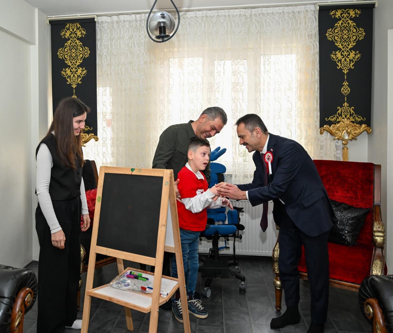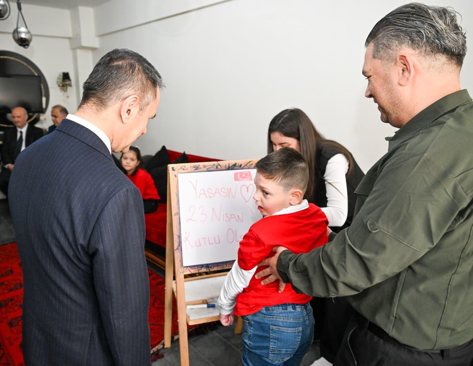 Vali İlhami Aktaş, 23 Nisan Ulusal Egemenlik ve Çocuk Bayramı kapsamında evde eğitim gören Yiğit Ege Kaçmaz’ı ziyaret ederek bayramını kutladı ve başarı dileklerinde bulundu.