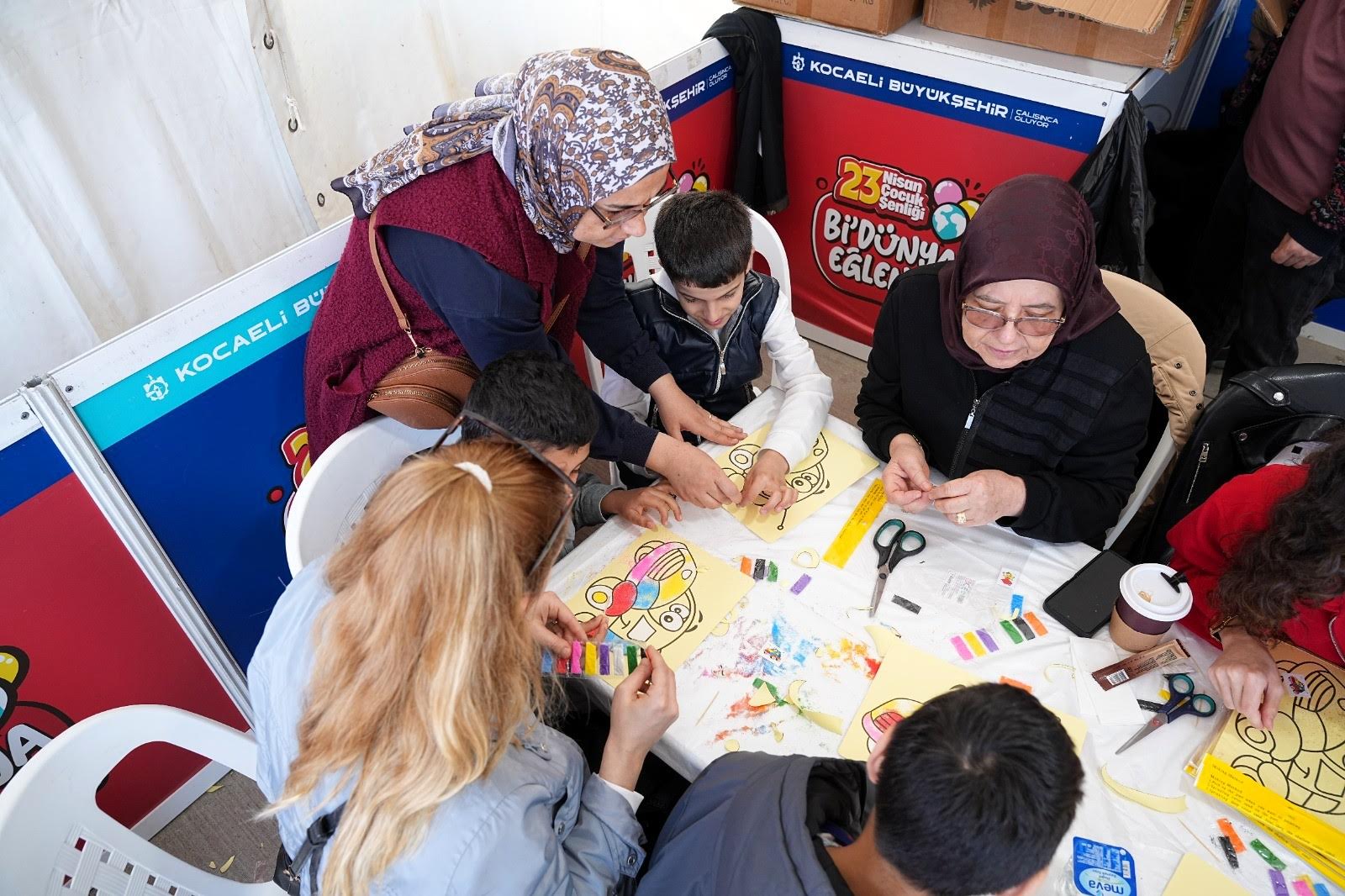 Kocaeli Büyükşehir Belediyesi’nin İzmit Milli İrade Meydanı’nda hazırladığı 23 Nisan programı kapsamında Mehmetçik Okulu’ndan 14 öğrenci, öğretmenleri ve aileleriyle birlikte etkinlik alanına geldi. 7-11 yaş aralığındaki özel eğitim sınıfı öğrencileri, gün boyunca düzenlenen atölyelere katılarak hem öğrendi hem eğlendi.