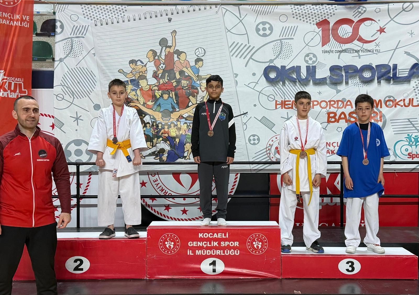 19 Nisan Pazar günü İzmit’te düzenlenen Kocaeli Karate Şampiyonası’nda mücadele eden Çayırova Belediyesi Eğitim Spor Kulübü sporcuları, performanslarıyla göz doldurdu. Turnuvada 6 altın, 3 gümüş ve 6 bronz madalya kazanan Çayırovalı karateciler, toplamda 15 madalyalık başarı elde etti. Çayırova Belediyesi’nden yapılan açıklamada ise sporcular ve antrenörler tebrik edilerek, “Sporda adımızı altın harflerle yazdırmaya devam ediyoruz. Kocaeli Karate Şampiyonası’nda 6 altın, 3 gümüş, 6 bronz olmak üzere toplam 15 madalya kazandık. Bizleri gururlandıran tüm sporcularımızı ve antrenörlerimizi tebrik ediyor, başarılarının devamını diliyoruz” ifadelerine yer verildi.